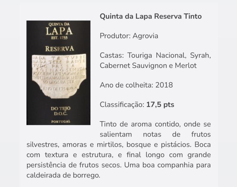 Quinta da Lapa Reserva Tinto 2018 in "A Seleção de José Miguel Dentinho 2024"